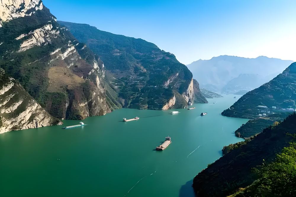 ▲ 碧波青山绿水间,游船经过长江三峡两岸风光无限