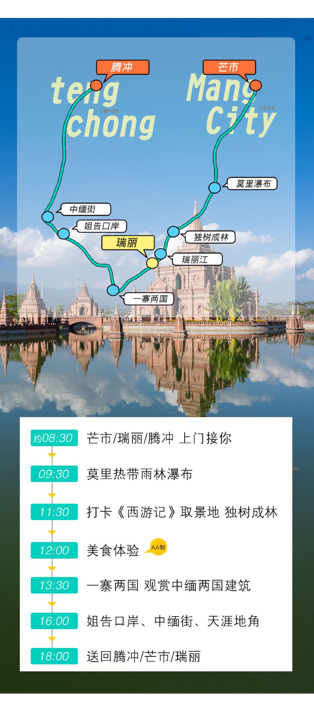 瑞丽一寨两国+姐告口岸+中缅友谊街+莫里瀑布+独树成林一日游【【边境小城】迷人的边陲小镇,属于瑞丽的异域风情;】