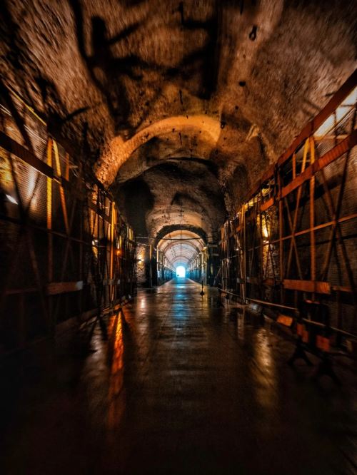 ▲ 816工程遗址轴向叠加全长20余千米,完全隐藏在山体内部,洞内冬暖夏凉,四季恒温。总建筑面积10.4万平方米,主洞室高达79.6米,拱顶跨高31.2米,洞内有大型洞室18个,道路、导洞、支洞、隧道及竖井130多条,建筑布局宛如迷宫,洞中有洞,洞中有楼,楼中有洞。