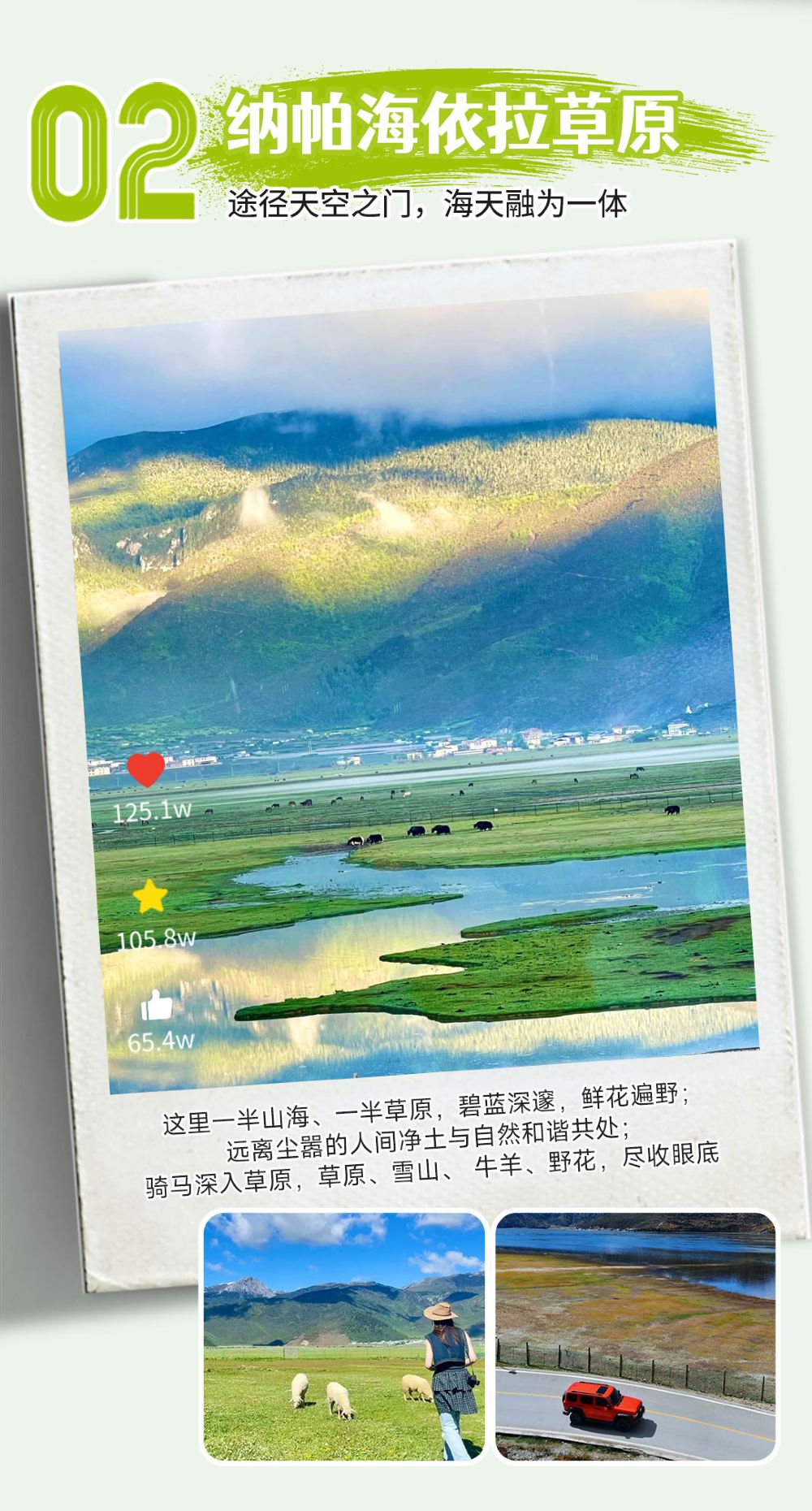 纳帕海依拉草原含骑马+网红经幡半日(纯玩+可选中餐/下午茶)【骑马(时间不低于30分钟)深入纳帕海草原,纳帕海景点环湖路段+网红大经幡、天空之门等拍照地标打卡】