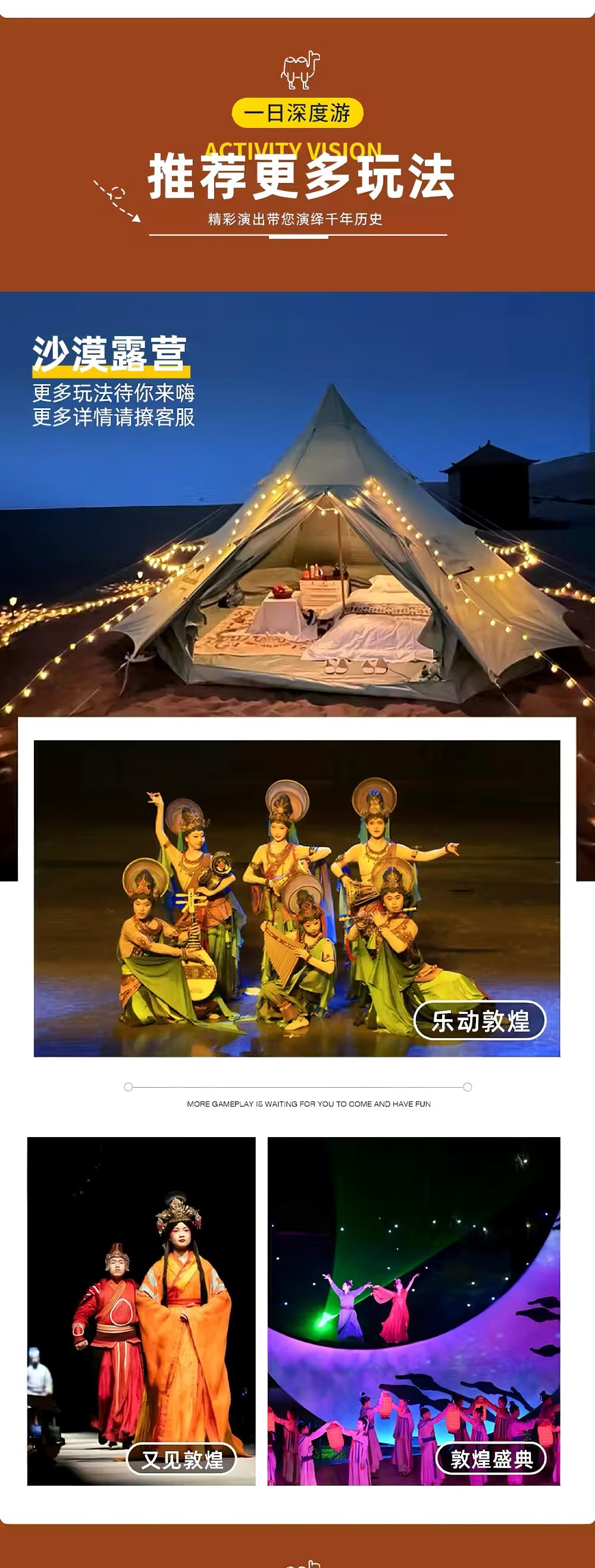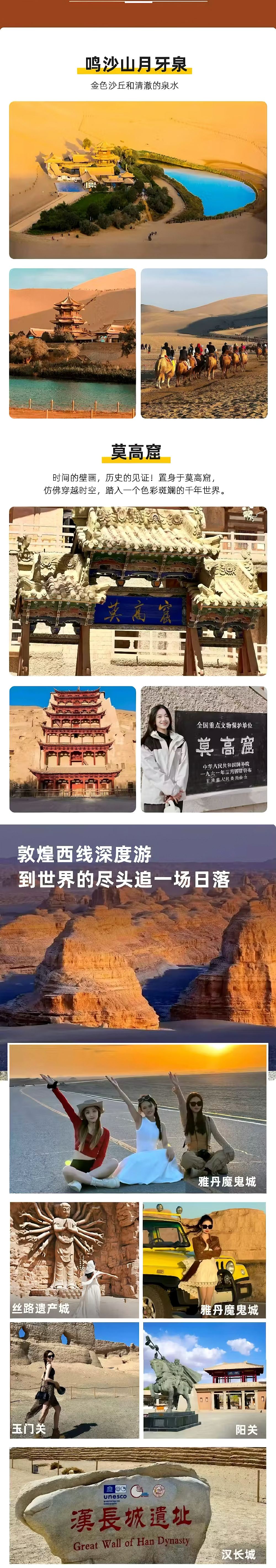 (西千佛洞门票不含,需要提前自行在小程序莫高窟参观预约网预约;只含部分景点阳关玉门关雅丹首道门票,观光车费用自理)