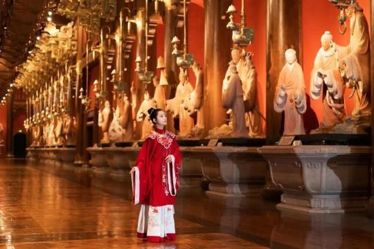 七十二贤廊是大学堂另一个重要的文化空间,这是一座90多米长,16米宽、16米高的雕塑大厅。31组栩栩如生的雕塑,展现的是《论语》《史记》《左轮》等古典典籍中,关于孔子及其弟子的言行等典型故事。通过活化手法和群雕、情景雕、个人雕等形式,表达尼山圣境所蕴含和倡导的明礼生活方式。
