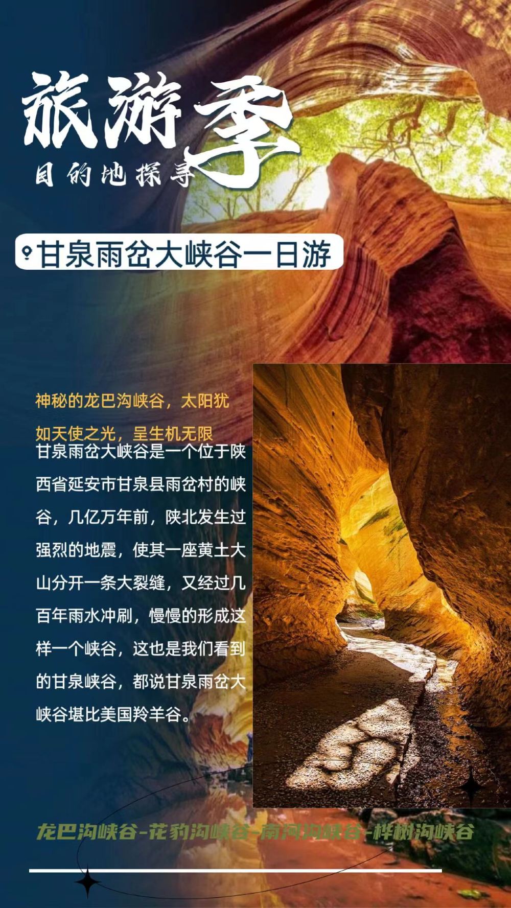 延安甘泉大峡谷一日游【雨岔大峡谷、一线天纯玩1日跟团游】【[行程包含景点]雨岔大峡谷、龙巴沟峡谷、一线天纯玩,尽情感受大自然】