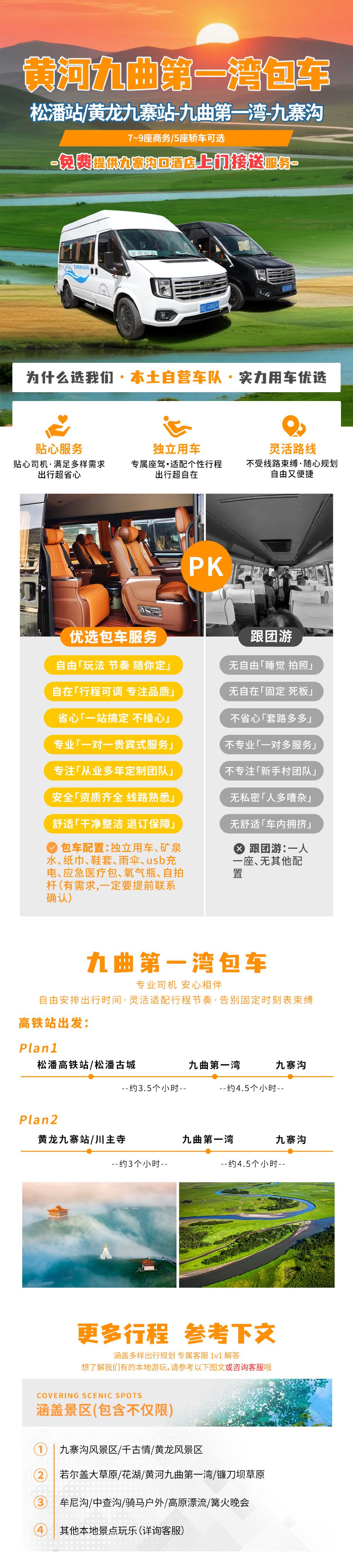 九曲包车「高铁站-花湖-九寨」【商务 轿车 任意发车时间】【双高铁站出发套餐|免费送达九寨沟口附近酒店|包车更方便|更私密】