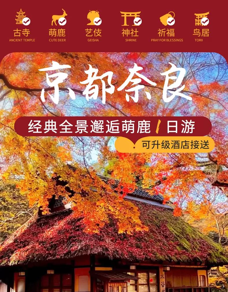 清水寺+伏见稻荷大社+奈良公园一日游【邂逅萌鹿京都奈良一日游,一天之内游遍关西精华,刷爆朋友圈】