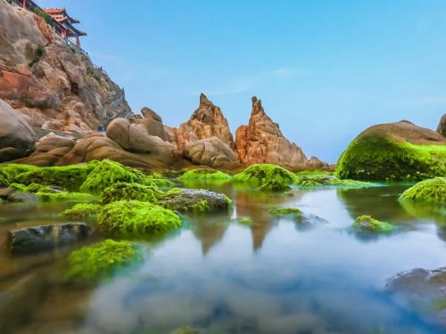 ▲ 成山头风景名胜区位于威海荣成龙须岛镇,因地处成山山脉东段而得名。它三面环海,一面接陆,与韩国隔海相望,是中国海岸的东端,这里也是胶东半岛看见海上日出的地方。这里的山体非常陡峭,可以看到群峰和满山的绿树,大崖下海涛翻腾,水流非常急,浪很大,很有气势,这里自古就是理想的避暑胜地。