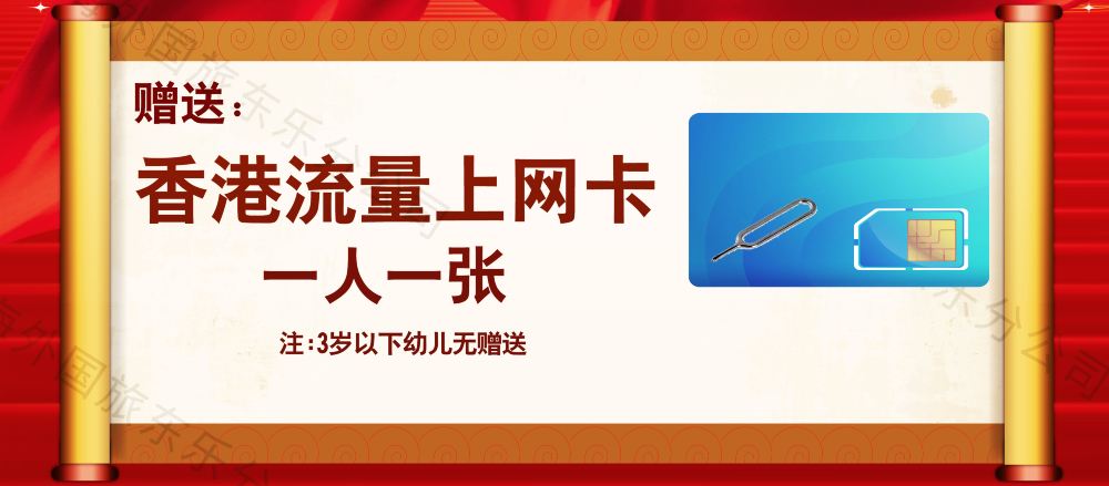【赠送礼品】报名赠送香港上网卡(1人送1张,3岁以下幼儿不赠送)