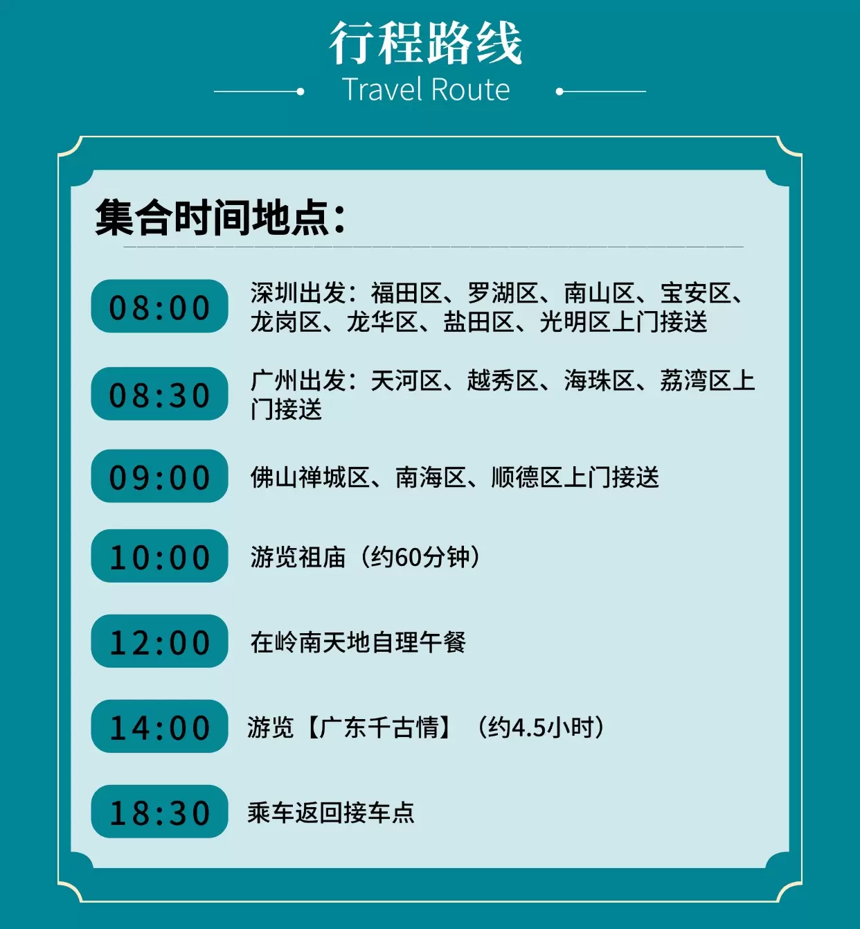 行程囊括佛山城市游经典景点和新潮玩法,沉浸式体验传奇佛山。