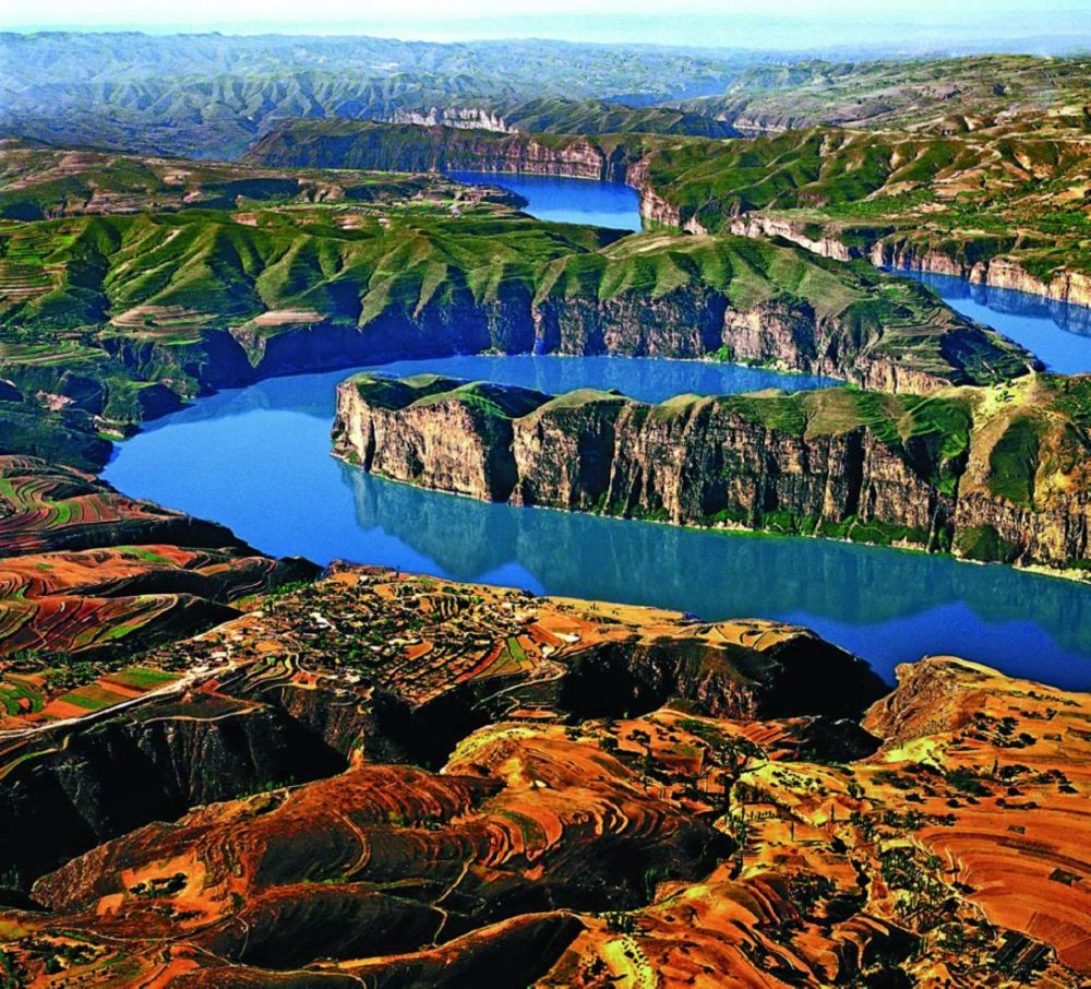 ▲ “天下黄河九十九道弯,美不过老牛湾”。黄河在此处形成近乎360度的乾坤湾。