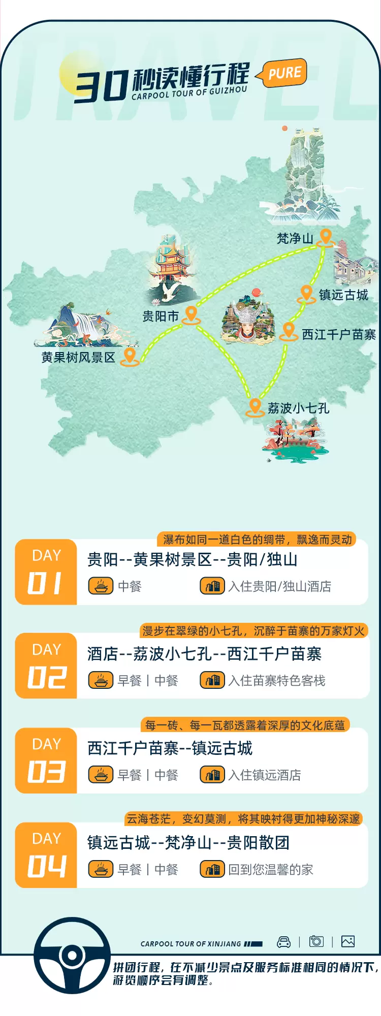 黄果树景区+荔波小七孔景区+西江千户苗寨+梵净山+镇远古城四日游【纯玩+可选升级观景河景+头等舱2+1保姆车】
