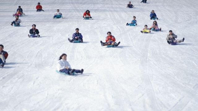 ▲ 乘坐雪橇从山顶滑下,在自然雪上享受刺激的雪橇之乐。大人小孩在冬日必做的玩雪活动之一!