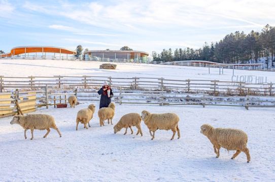 ▲ 一个拥有广阔草地的体验式农场,冬日雪白的大地上可爱的绵羊跟羊驼正向您走来、快来跟牠们亲近互动吧!