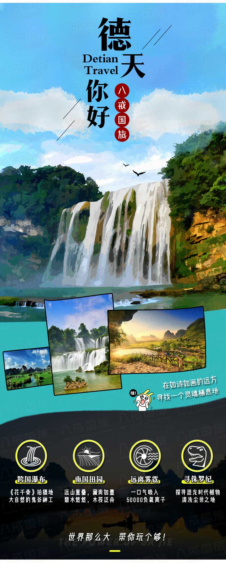 北海德天跨国瀑布+通灵大峡谷二日游【北海起止/纯玩无购物/可升级明仕田园/含住宿】