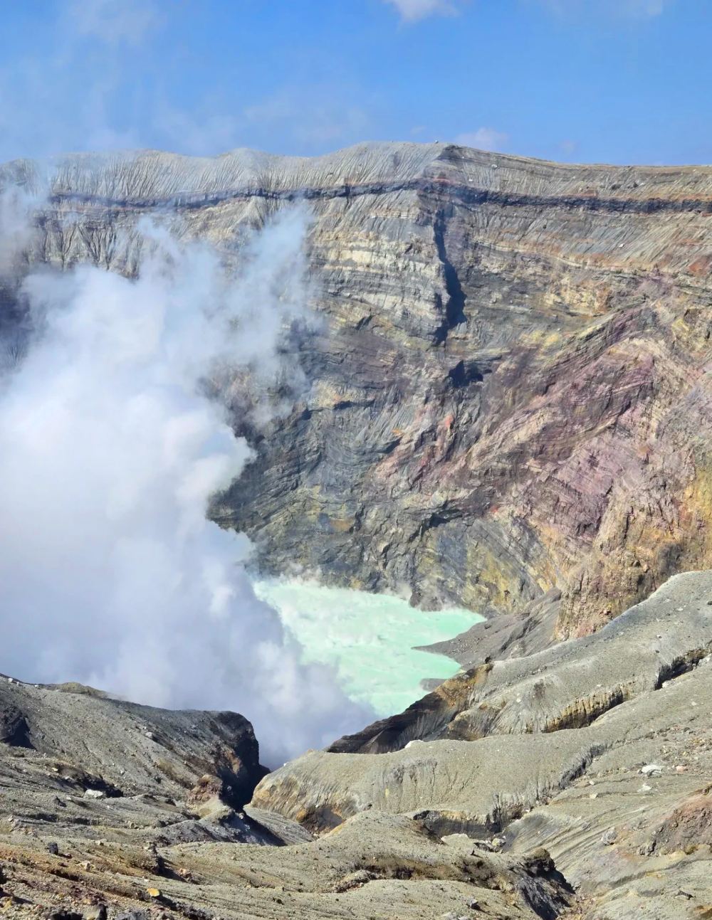 ▲ 阿苏火山口:世界等级火山群之一,近距离感受火山喷薄的力量,那片青蓝色火口湖让人心生敬畏。阿苏山火山口硫磺味较重,对气味较敏感者可携带口罩。