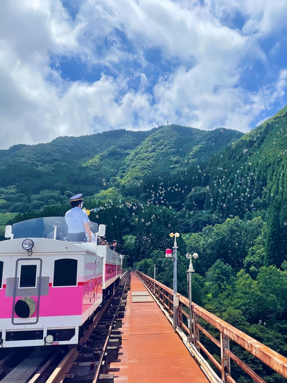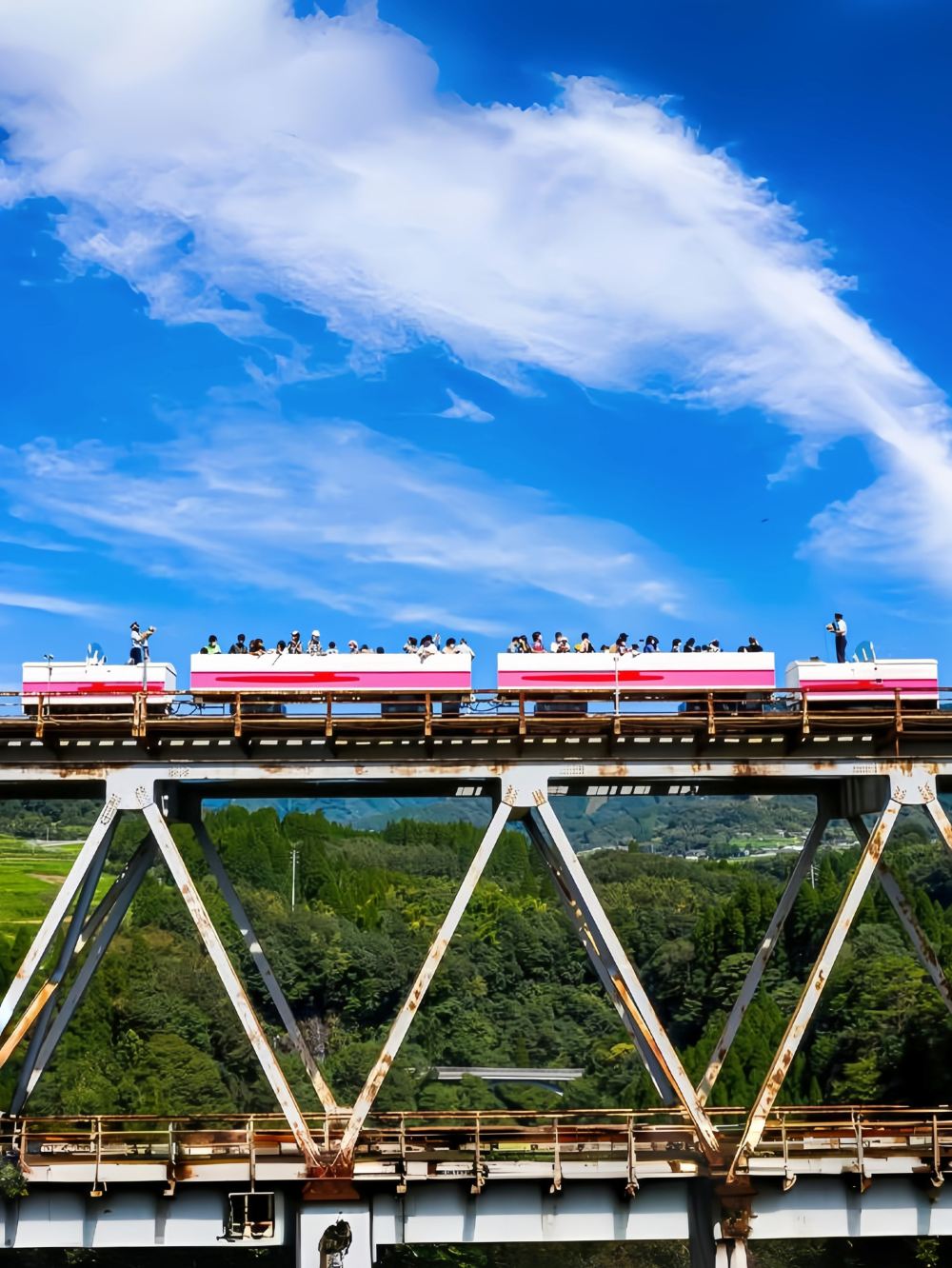 ▲ 高千穗小火车/上色见熊野座神社 登上复古小火车,沿着蜿蜒铁轨驶向高千穗的山间秘境,窗外是层林尽染的峡谷景色与辽阔田野。列车缓缓前行,仿佛带你穿越时光,感受高千穗独有的静谧与诗意。(12.1-2.28 由于冬季户外寒冷不适合乘坐小火车将会替换为上色见熊野座神社。)