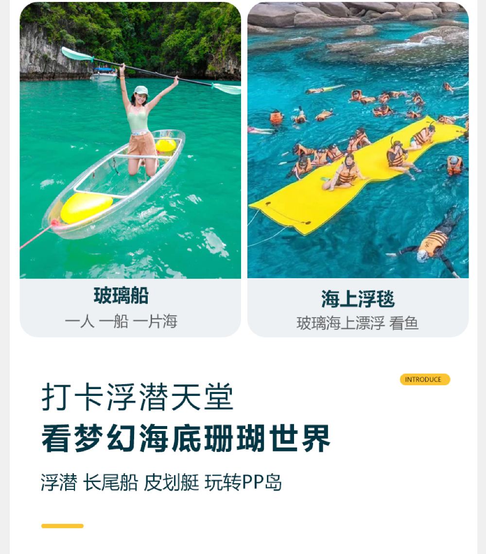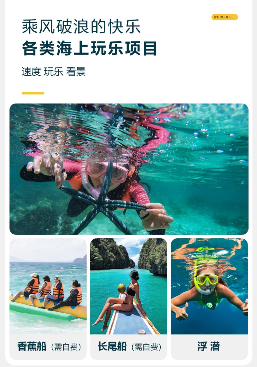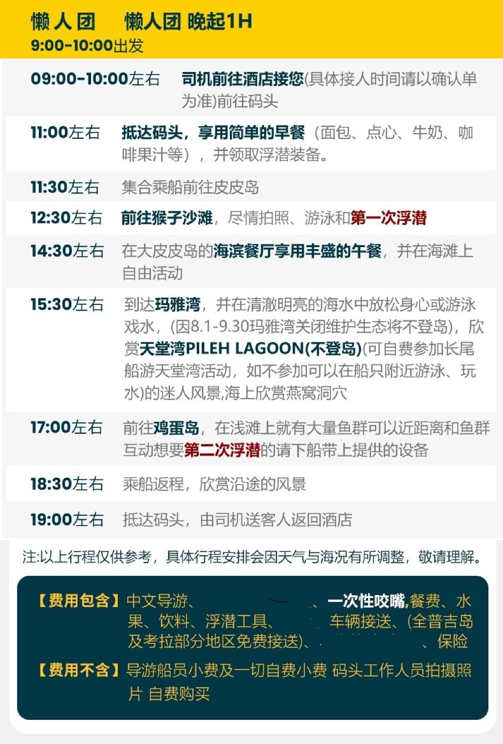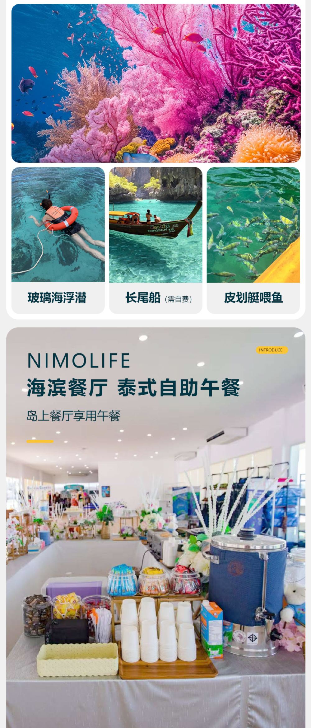 可自费参加长尾船游天堂湾项目,不参加的客人,可在船附近游泳,玩水