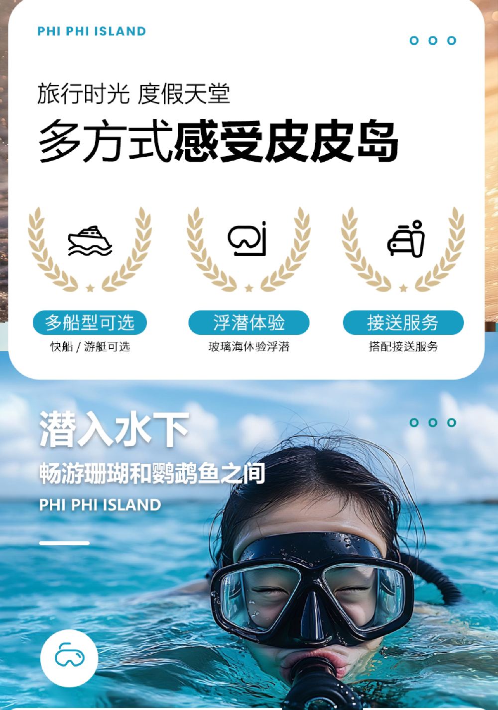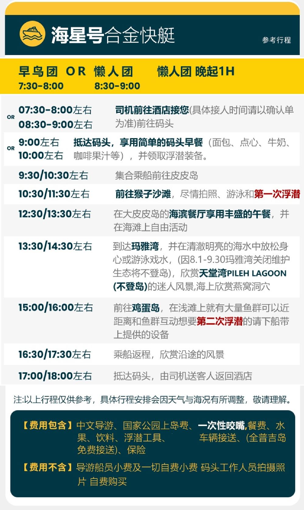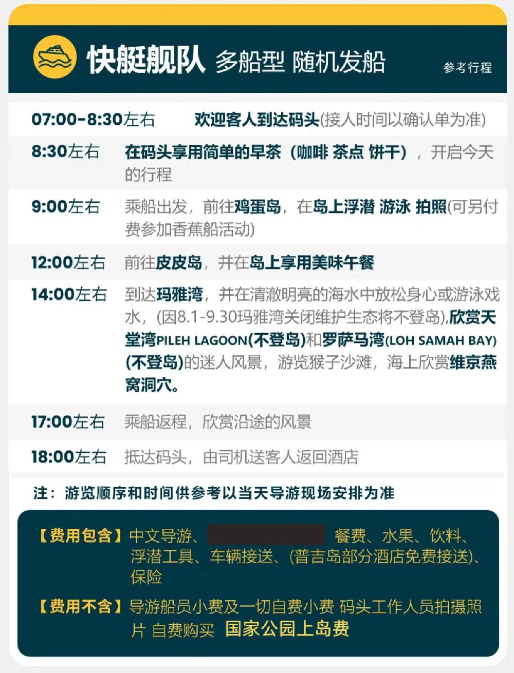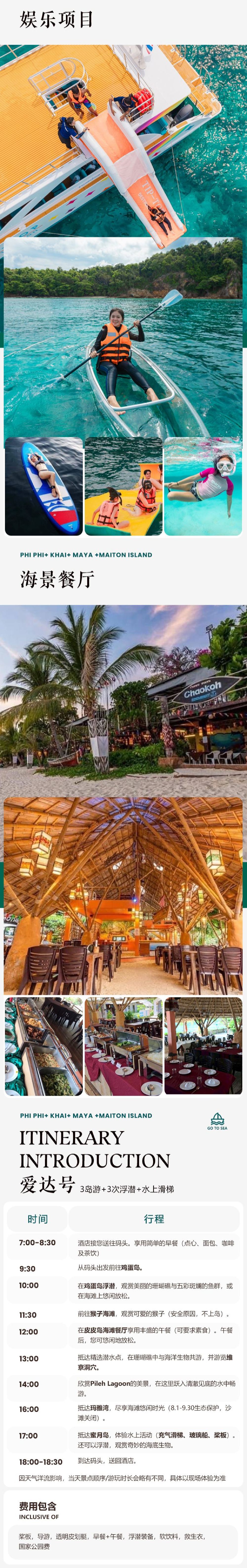 可自费参加长尾船游天堂湾项目,不参加的客人,可在船附近游泳,玩水