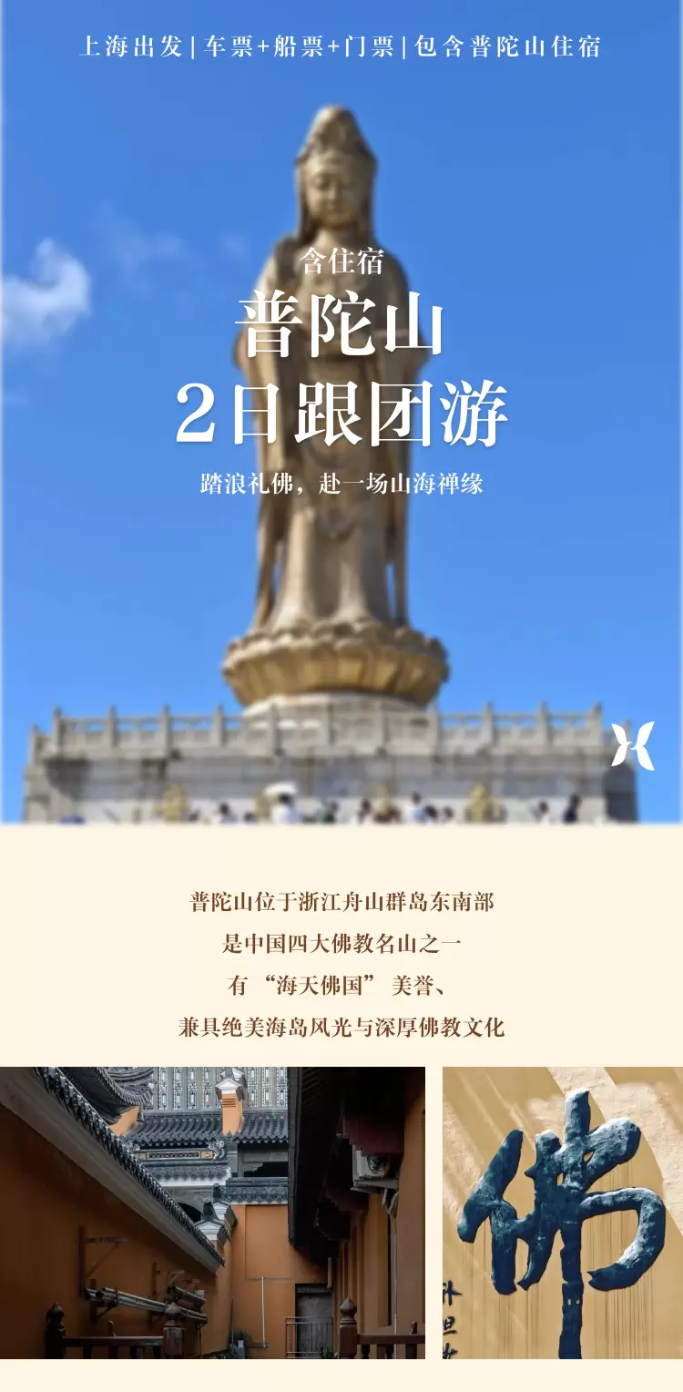 【上海出发】普陀山2日跟团游(含门船票+普陀山住宿+当地中文导游服务)
