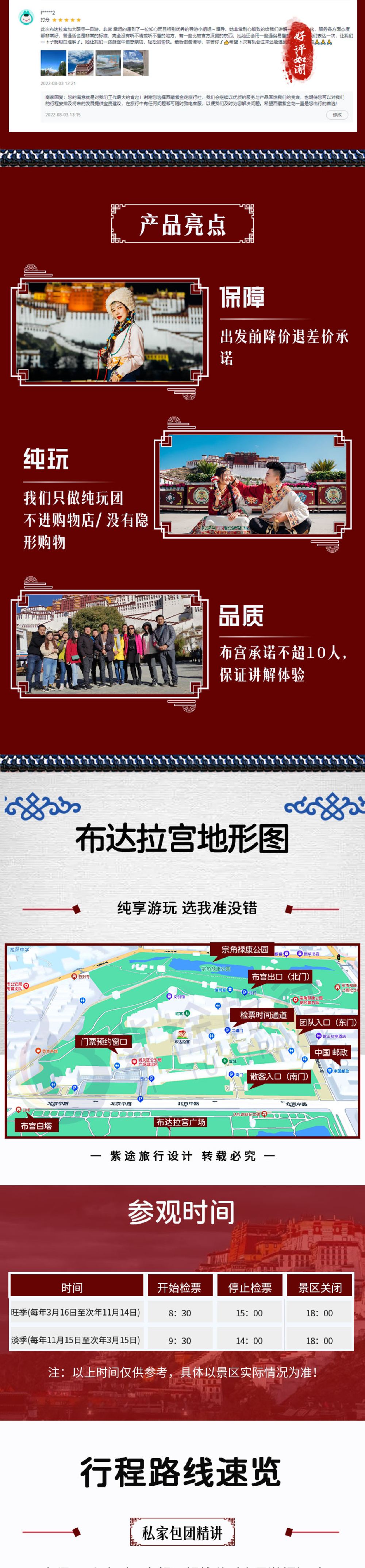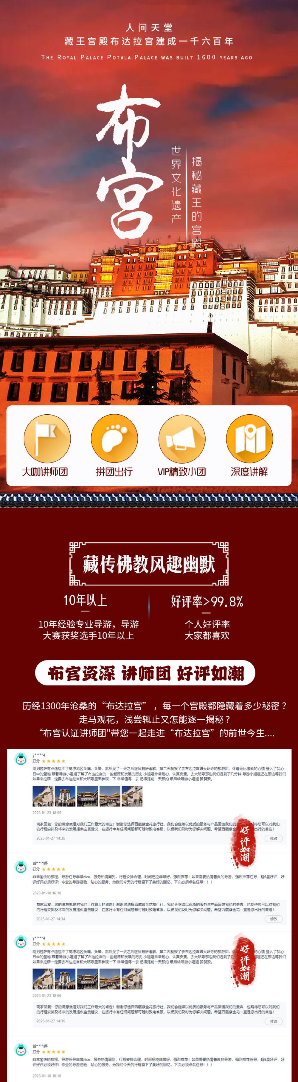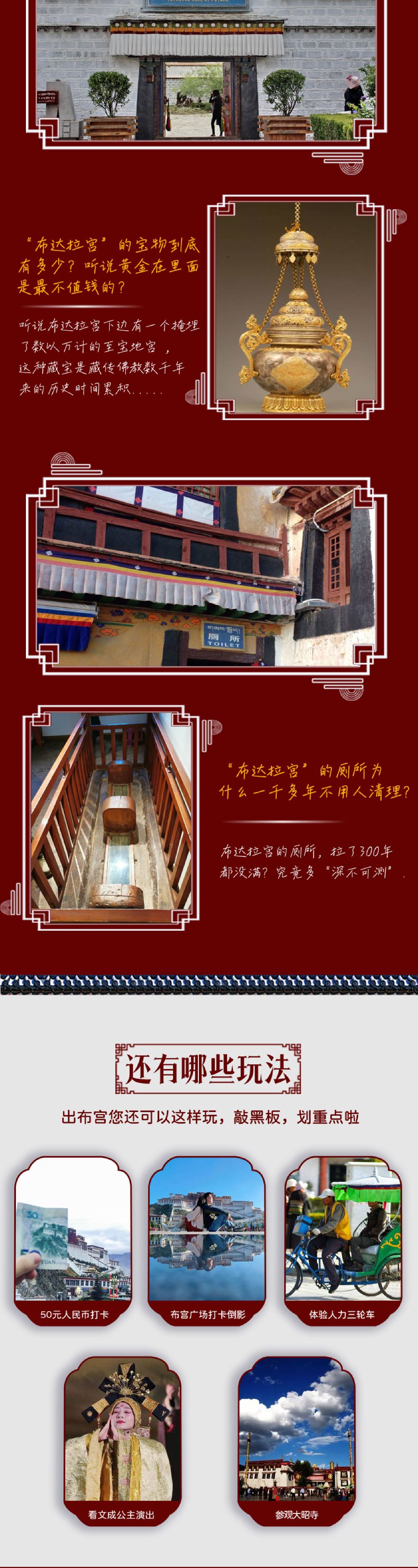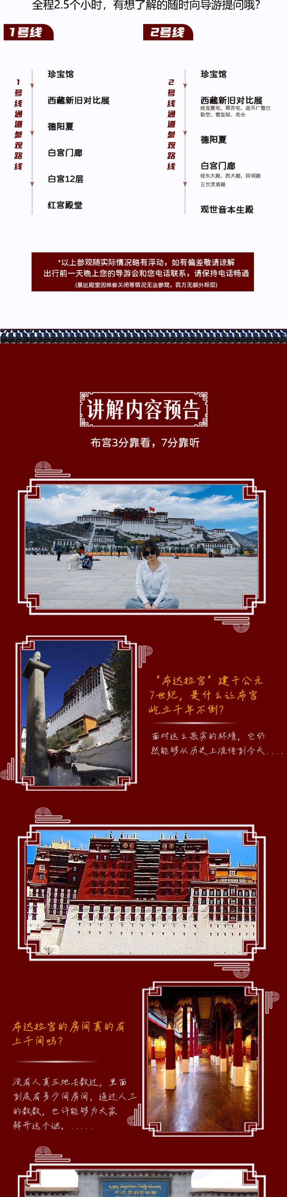 【入园时间2】因布宫景区的特殊性,入园时间由布达拉宫管理处随机分配 ,布宫参观时间参考由导游具体安排,游客不可指定入园时间;