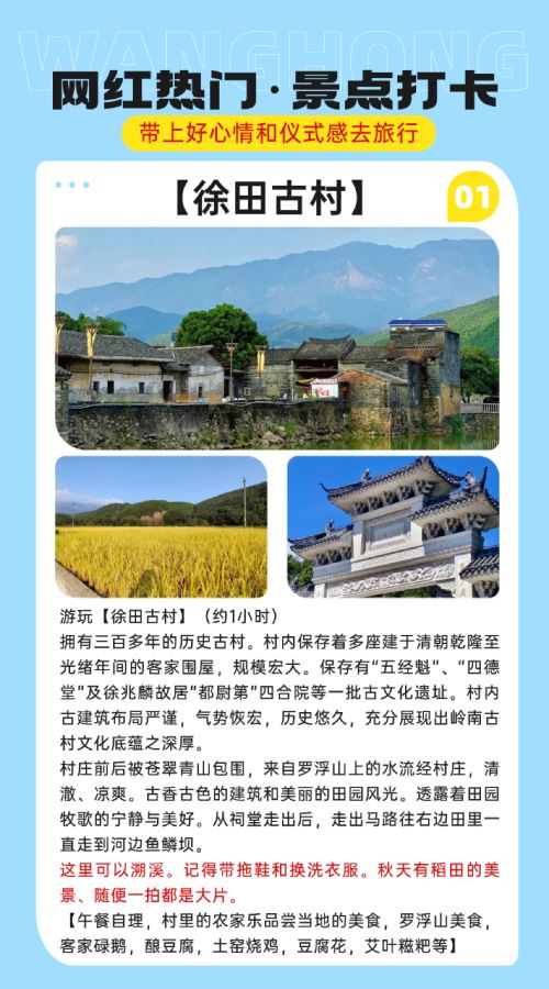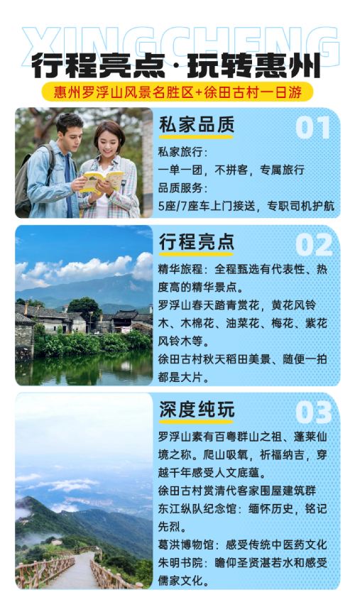 惠州罗浮山风景名胜区+徐田古村一日游【私家小团+上门接送】【私家旅行:一单一团,不拼客,专属旅行; 品质服务:5座/7座车上门接送,专职司机护航】