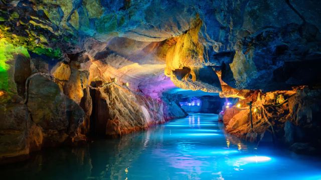 【瑶琳仙境】瑶琳仙境(又名瑶琳洞)位于浙江省桐庐县境内,距杭州80公里,离桐庐县城23公里左右。这是当地有名的钟乳石山洞,整个洞穴纵深1公里,洞内造型各异的石笋和钟乳石在各色灯光映衬下特别漂亮。