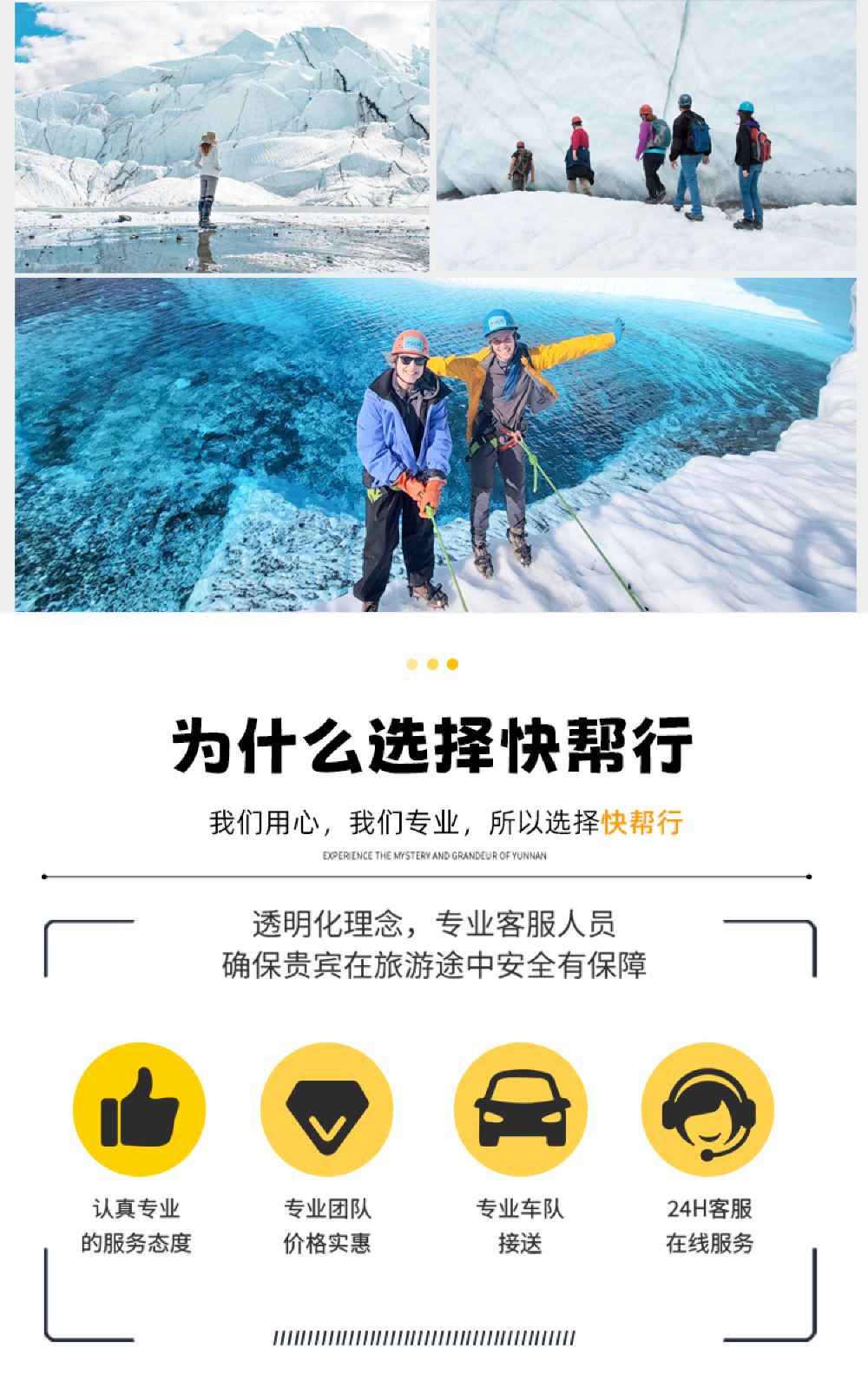 3. 与冰川近距离接触时,请自备登山鞋,轻便外套,备用袜子,以及太阳眼镜