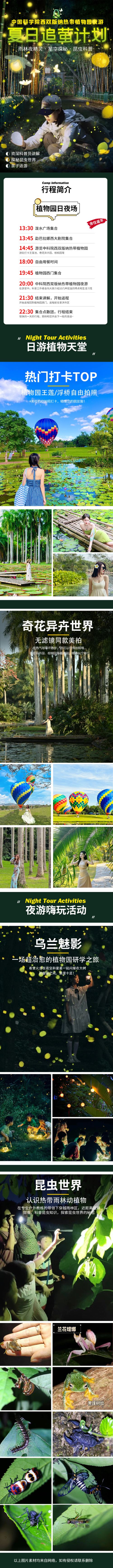 6:注意,非常关键,白天也有讲解,我们双导游服务,因为植物园科普性很强,没有导游讲解和服务,很多游客看不懂,不知道玩什么!这个行程二部分构成,切记,白天根据当天报名人数安排车和导游(白天场是30人以上大巴团),夜游部分是分组体验,一组6-14人,每组一位中科院夜游科普老师给大家讲解和服务,请知晓!