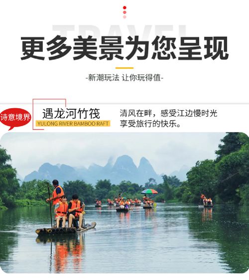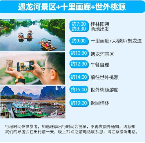 遇龙河徒步/竹筏漂游+世外桃源+十里画廊/银子岩一日游【[经典精华景点]阳朔遇龙河双人竹筏(可选)+十里画廊+工农桥+世外桃源】