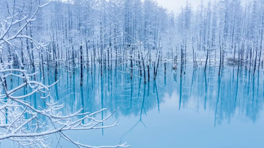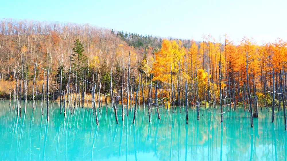 ▲ 白金青池, 因池水中富含矿物质,使得水面呈现柔和的蓝绿色调, 一棵棵树干静静立在水中, 倒映着天空与云影,是北海道很受欢迎的自然景点。 步道平缓,适合慢慢散步欣赏这份宁静。