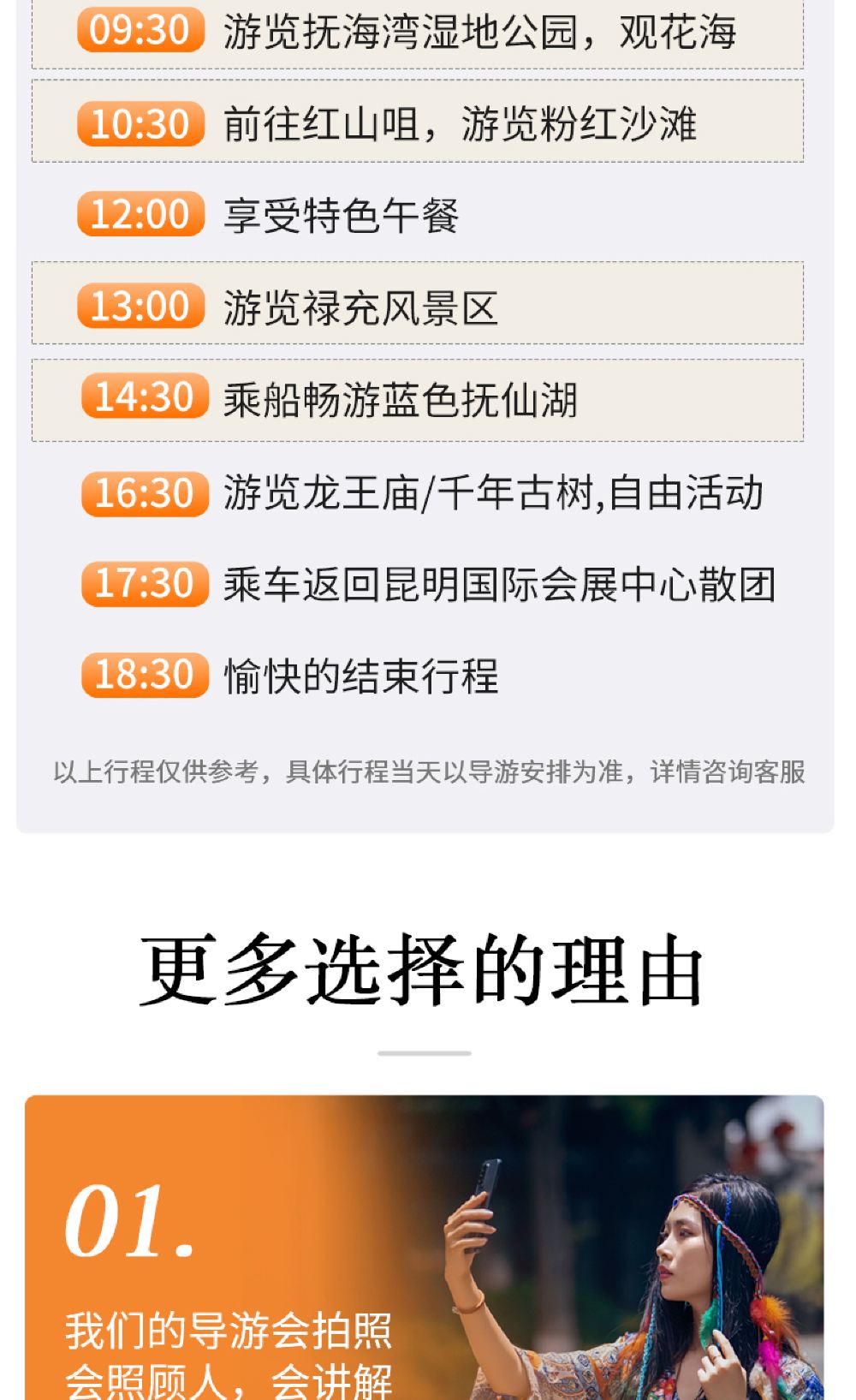 2、集合时间、集合地点导游会提前一天晚上联系告知,行程仅供参考,导游告知的为准。