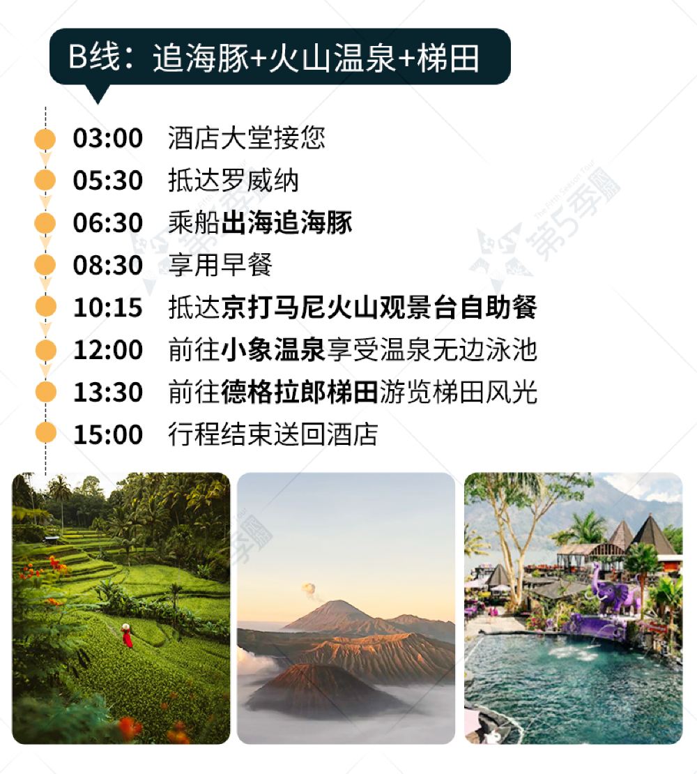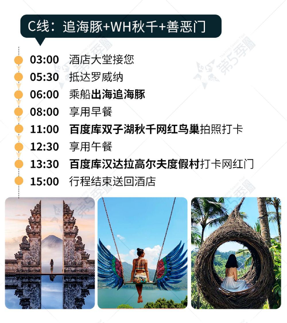 巴厘岛罗威纳追海豚一日游看海豚滑翔伞火山温泉漂流巴厘岛旅游【【网红景点】火山、温泉、秋千、滑翔伞、漂流、SPA、等多线路任意搭配!】