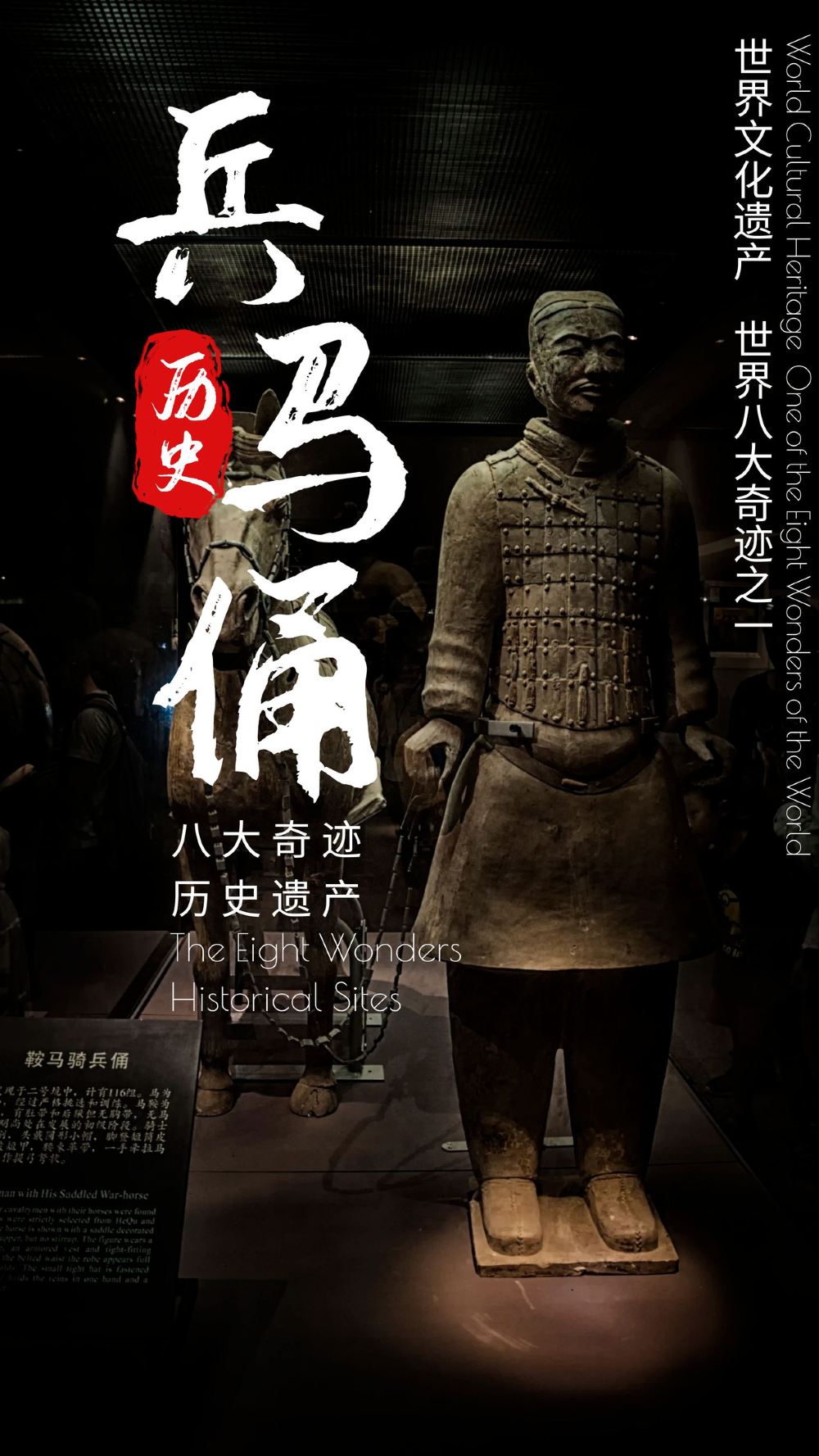 秦朝(公元前221年-前207年),是由战国时期的秦国发展起来的中国历史上第一个大一统王朝。兵马俑是秦始皇帝陵的一个陪葬坑,里面有很多兵马(战车、战马、士兵)形状的殉葬品,被誉为“世界第八大奇迹”,是二十世纪考古史上的伟大发现之一。