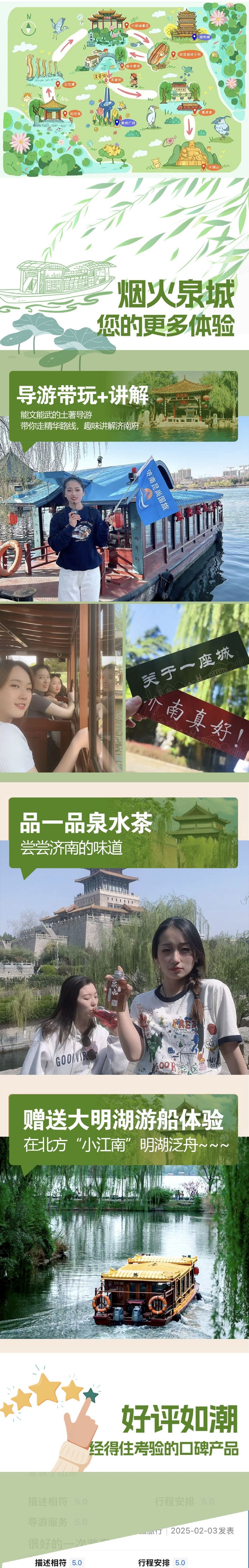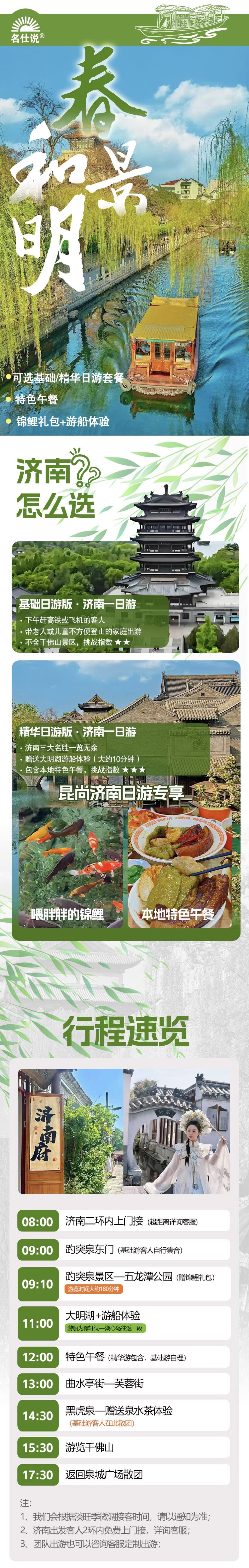济南趵突泉+千佛山+大明湖一日游【赠游船/含餐/特色泉水茶】【[趣游济南 阳光行程]门票全含·三大名胜·明湖泛舟·品泉水茶·召唤锦鲤·济南特色把子肉·无线耳麦】