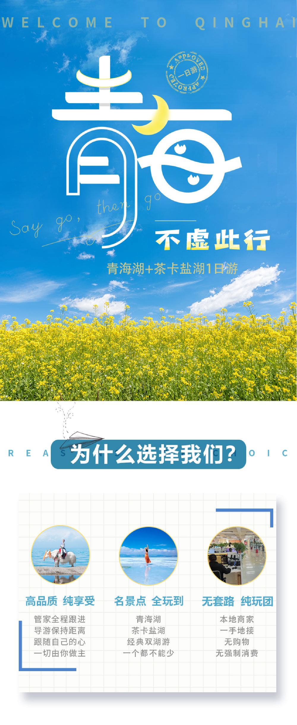 青海湖+茶卡盐湖一日游【天天发一价全含/真纯玩团/导游讲解】【纯玩无自费,享受高品质服务,走青海湖全景精华线路。】