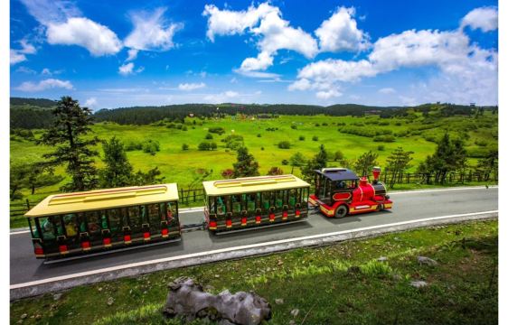 ▲ 乘坐仙女山火车,游客可以以悠闲的方式欣赏仙女山的自然美景,感受高山草原的辽阔与森林的静谧