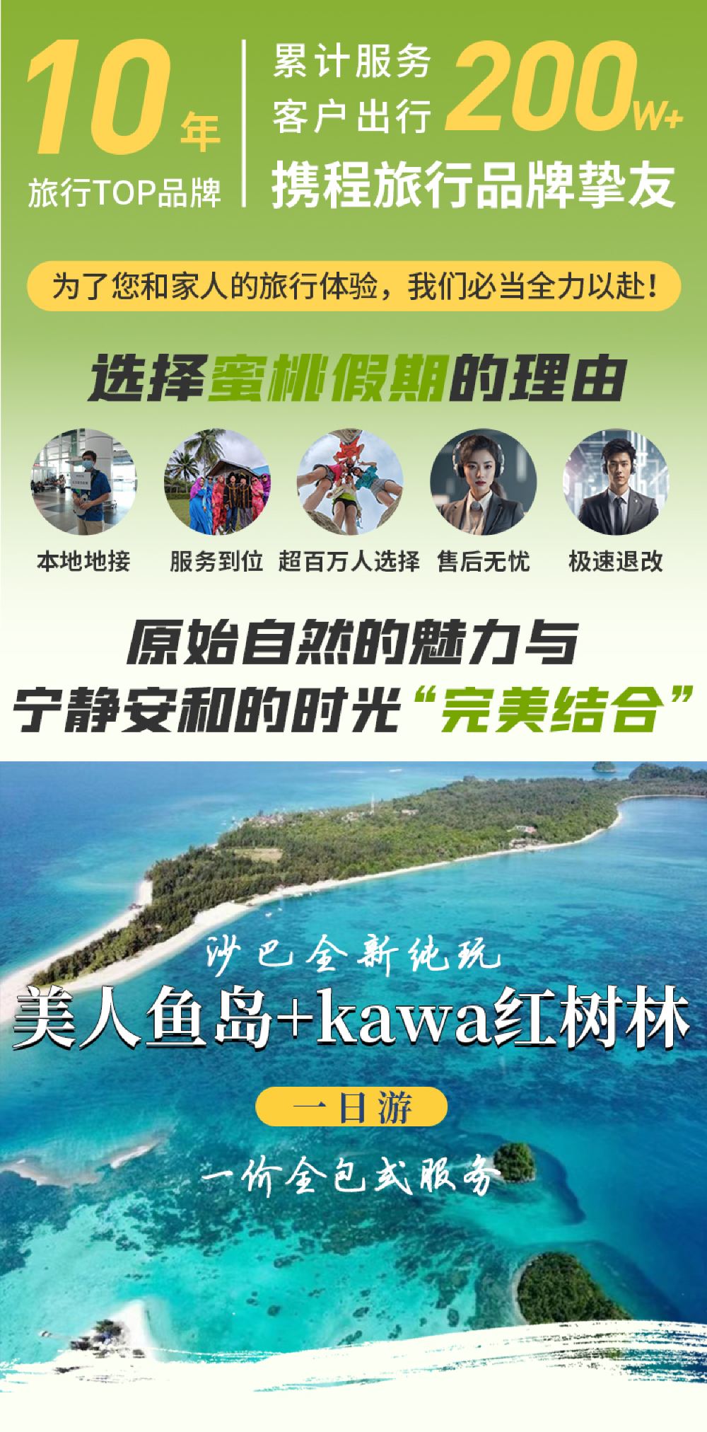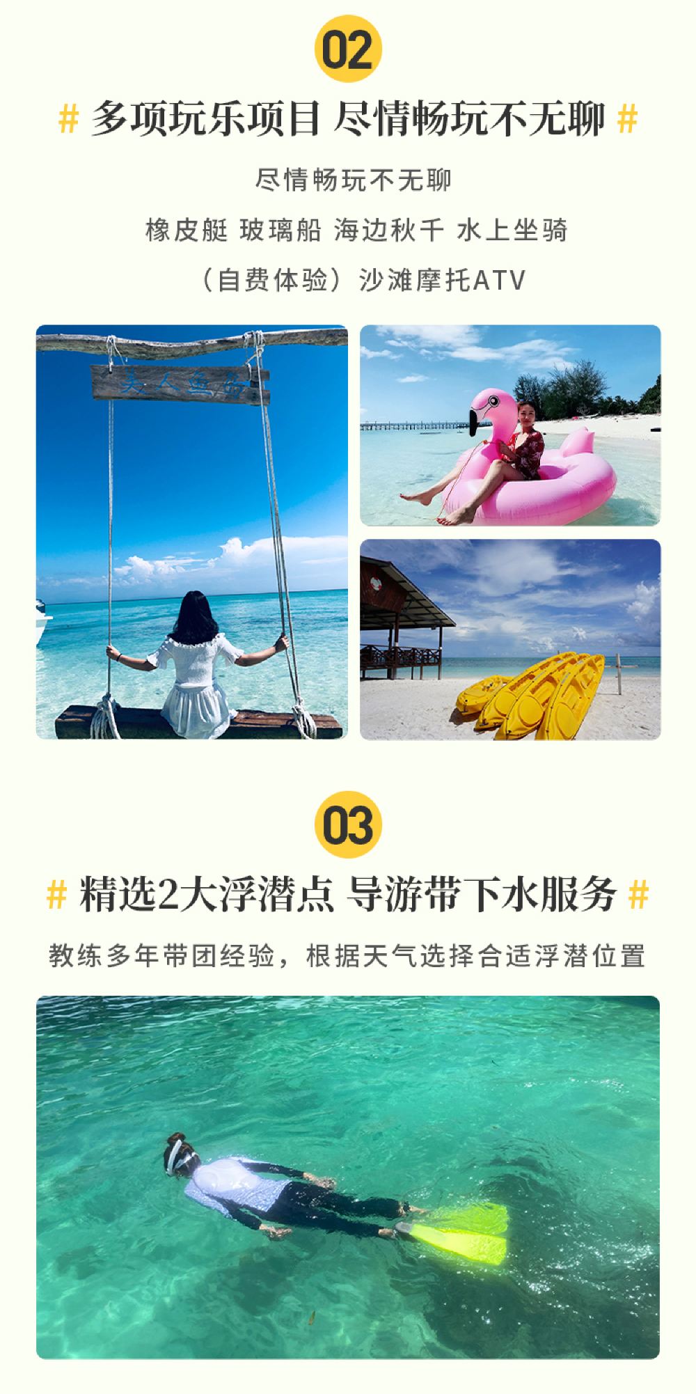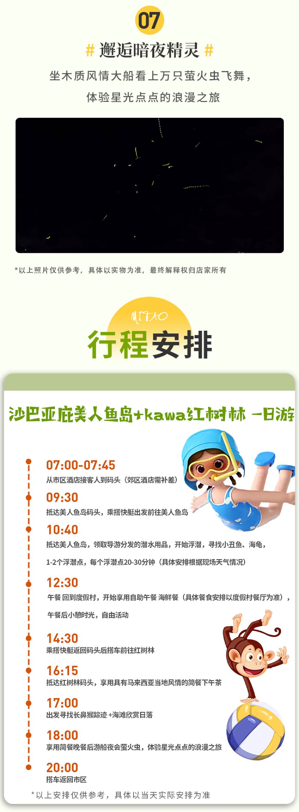 沙巴美人鱼岛+Kawa红树林|水上设施+长鼻猴/萤火虫+午餐【原始自然的魅力与宁静安和的时光完美结合!超多娱乐设施畅玩橡皮艇、水上蹦迪、秋千、水上坐骑等!】