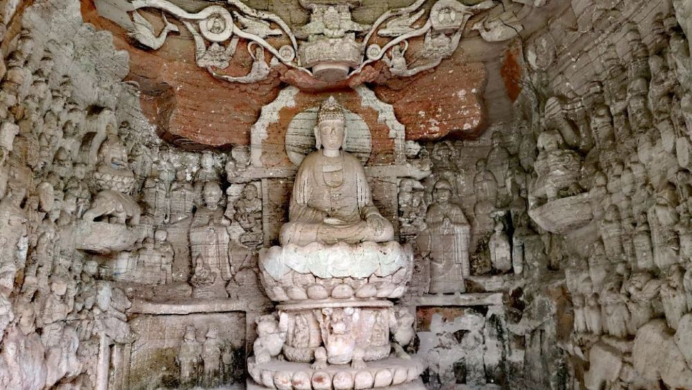 保定山石刻是大足地区*具代表性、规模*大的石刻群,由赵志峰僧人指导,历时七十余年于南宋时期完成。石刻以其宏大的叙事场景、精湛的工艺和深刻的佛教哲学内涵而闻名,沿着五百米长的马蹄形山谷,构成一幅连绵不断的立体卷轴。它们与自然景观浑然一体,将佛教教义与人生哲理融为一体,具有深厚的艺术和教育价值。