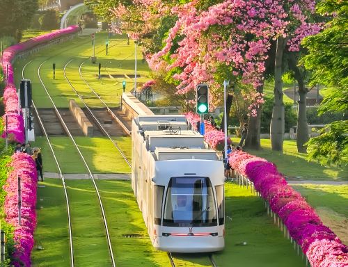 您的一天从悠闲乘坐"**7公里有轨电车"开始。这趟迷人的电车蜿蜒穿行于城市繁华的街道,为您提供独特的平视视角,领略广州的市井生活与城市绿意。