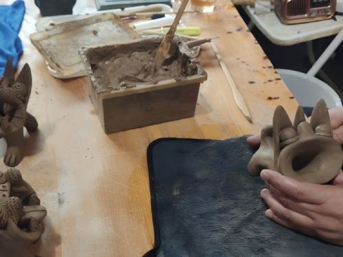 ▲ 在传习所里面,愉快度过“玩泥巴”的快乐时光。在揉泥、修坯、塑形、烧制等一系列的黑陶制作过程中,不仅了解和学习了这项土陶手艺,也收获一件独特的自己亲手制作的黑色艺术品。