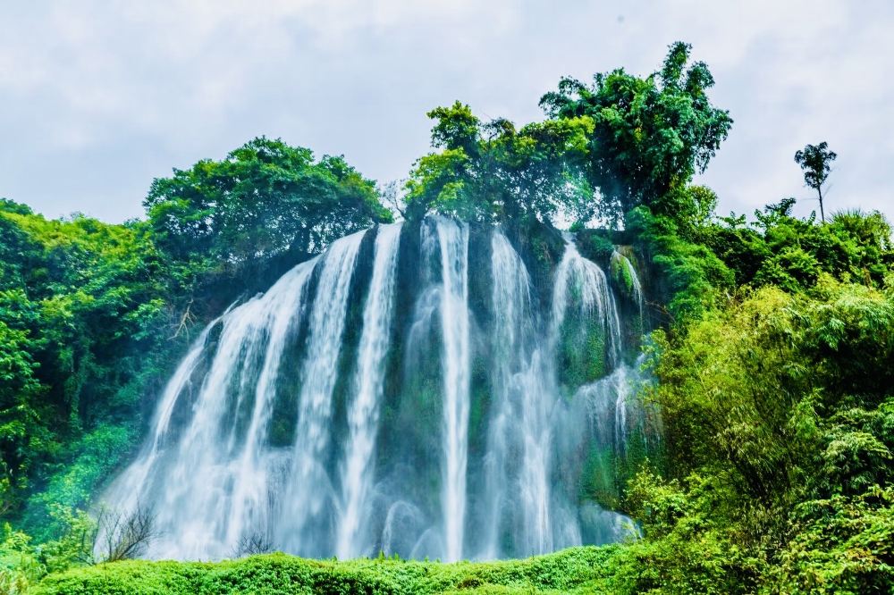 ▲ 三叠岭是位于广西壮族自治区靖西市湖润镇的一片石灰岩山峦,因山势呈三级台阶状而得名,其标志性景观三叠岭瀑布高100多米、宽约30米,是靖西古八景之一。