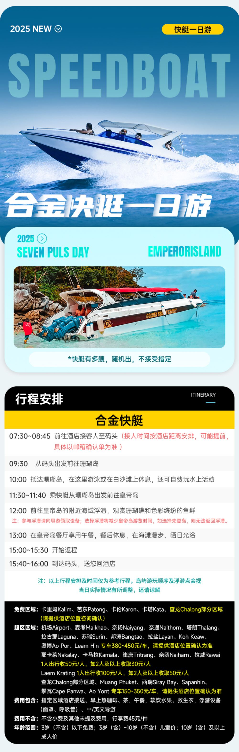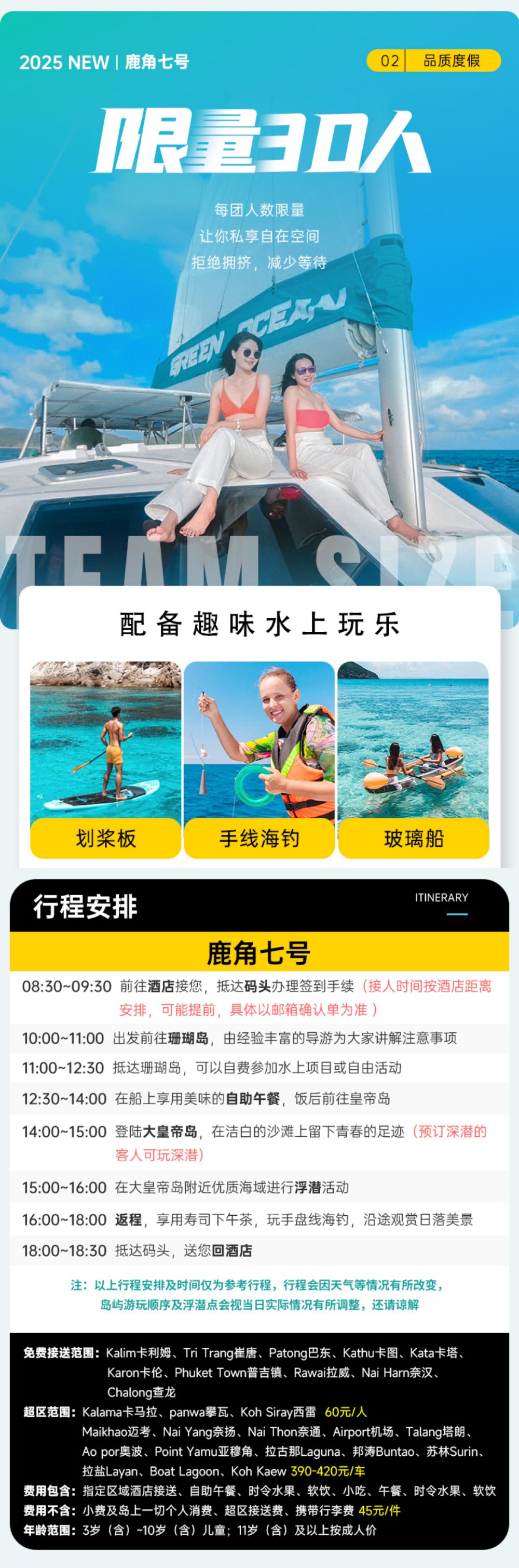 普吉岛皇帝岛+珊瑚岛一日游 狂想曲/星球帆船出海浮潜 含接送【星球七号20人VIP小团,亲子畅玩水上滑梯、手线海钓,全程中文导游,接送无忧】