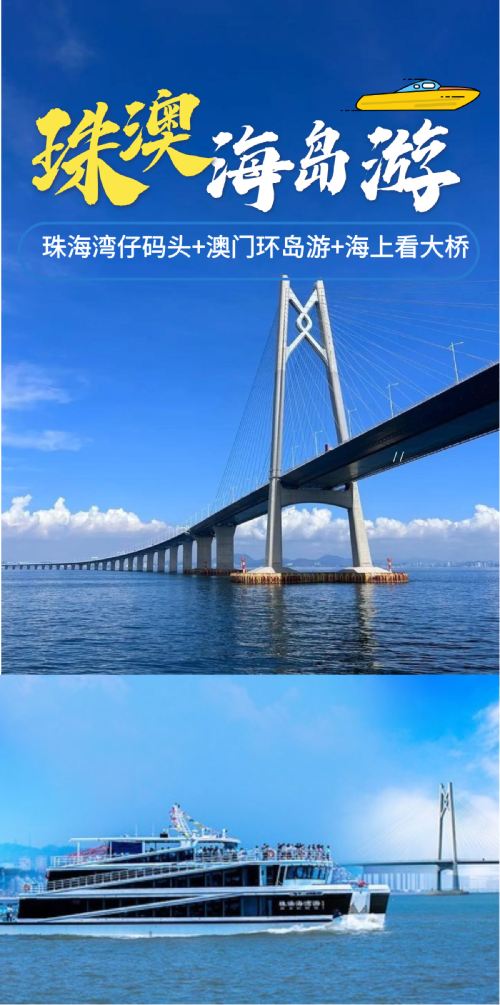 “澳门环岛游”航线途经:国际会展中心、横琴金融岛、澳门新葡京娱乐城、澳门三座跨海大桥、南海观音、珠澳口岸人工岛、穿梭港澳飞翼船、澳门国际机场、港珠澳大桥,可以看澳门、珠海、港珠澳大桥,但是不穿过大桥