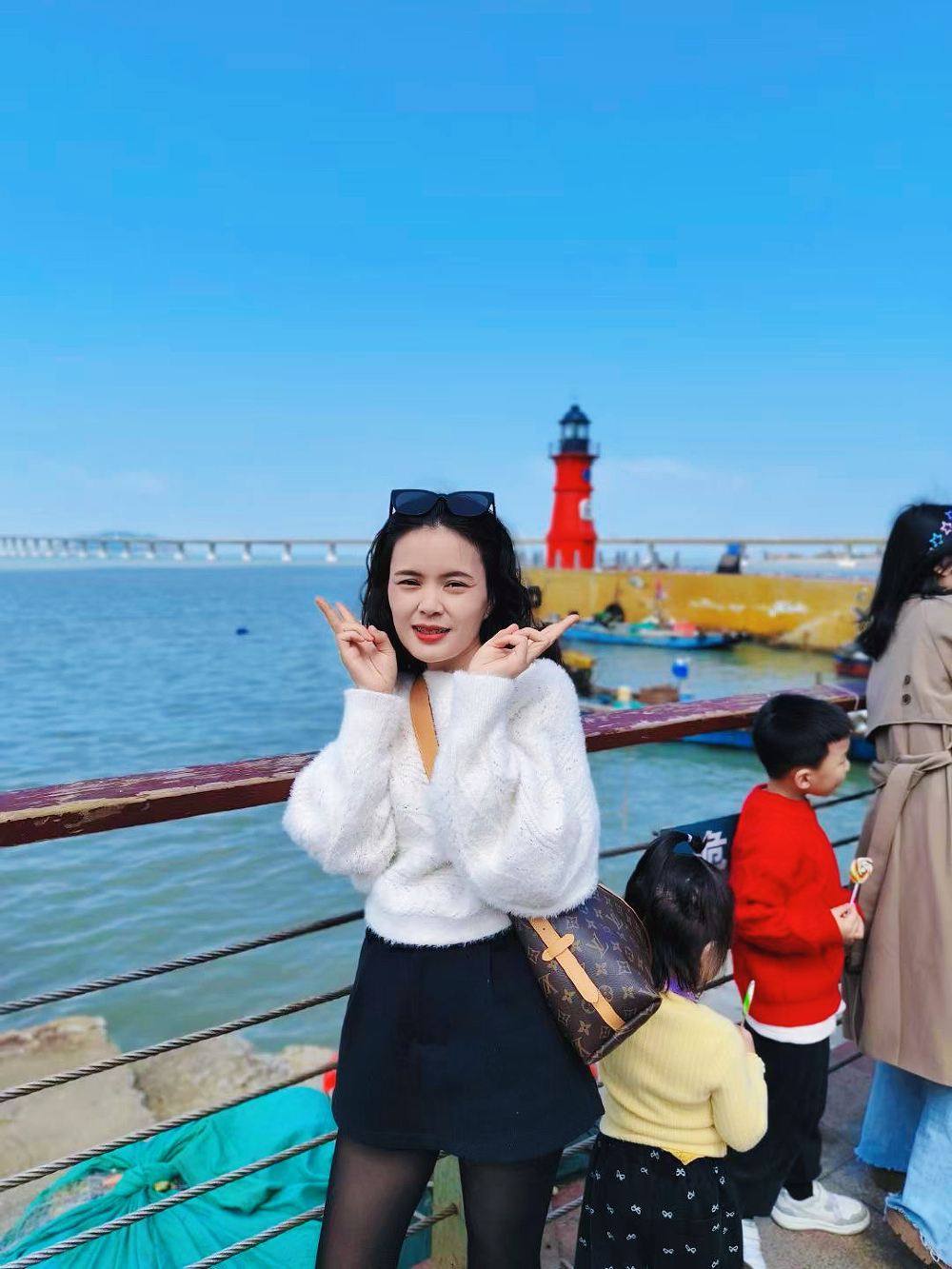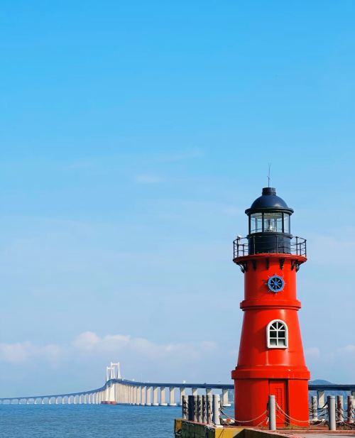 特色:红白相间的复古灯塔,背靠南澳大桥,日落时分与大桥同框如电影画面
