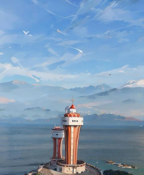 特色:浅绿色奶油色灯塔,延伸入海的栈道适合拍“天空之镜”