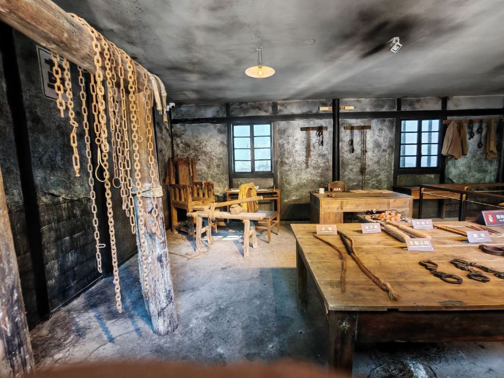 ▲ 渣滓洞位于重庆市主城区沙坪坝区歌乐山下,距白公馆2.5公里。渣滓洞原是重庆郊外的一个小煤窑,因渣多煤少而得名。渣滓洞三面环山,地势隐蔽,因此被国民党特务机关相中并改造成秘密监狱,用来关押进步革命者。1939年,国民党军统特务逼死矿主,霸占煤窑,在此设立了监狱。分内外两院,外院为特务办公室、刑讯室等,内院一楼一底16间房间为男牢,另有两间平房为女牢。 渣滓洞因小说《红岩》而出名。关押在此的有“六一”大逮捕案、“小民革”案、“挺进报”案、上