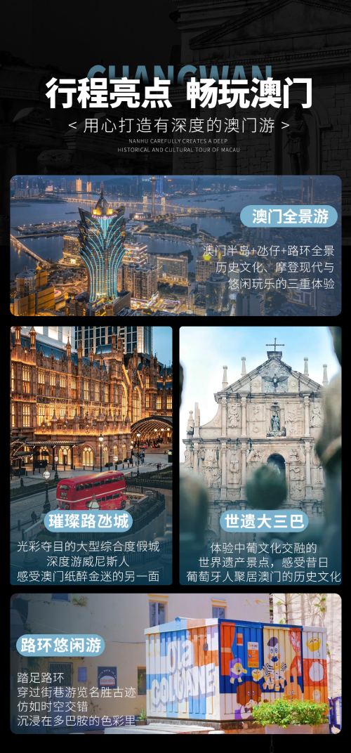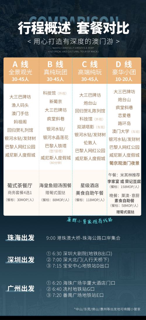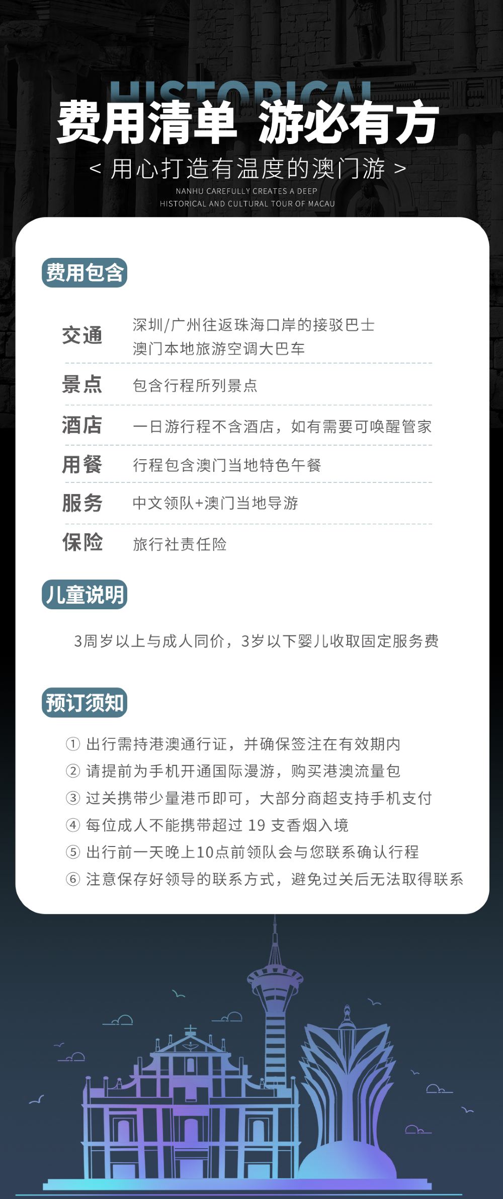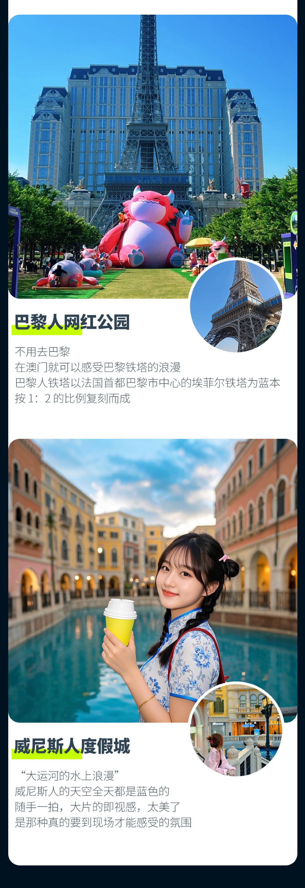 【澳门一日游-送流量卡】大三巴+巴黎人铁塔+威尼斯人度假城【[澳门高端纯玩团]一手地接资源,确保品质,打造真正的纯玩团,C线升级自助餐,豪华线路。】