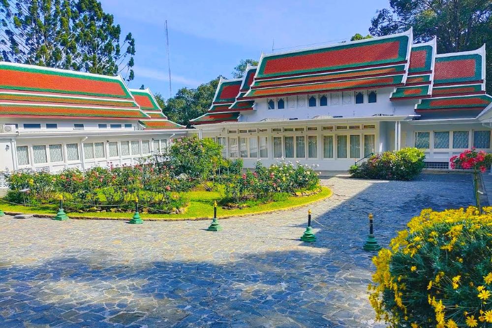 蒲屏皇宫是泰国王室的避暑行宫,于1962年建造在素贴山上。这座白墙黄瓦的泰式建筑坐落在青山之中,格调雅致,园内不仅树木葱郁,而且种植着玫瑰、鼠尾草等各种奇花异草,十分秀丽