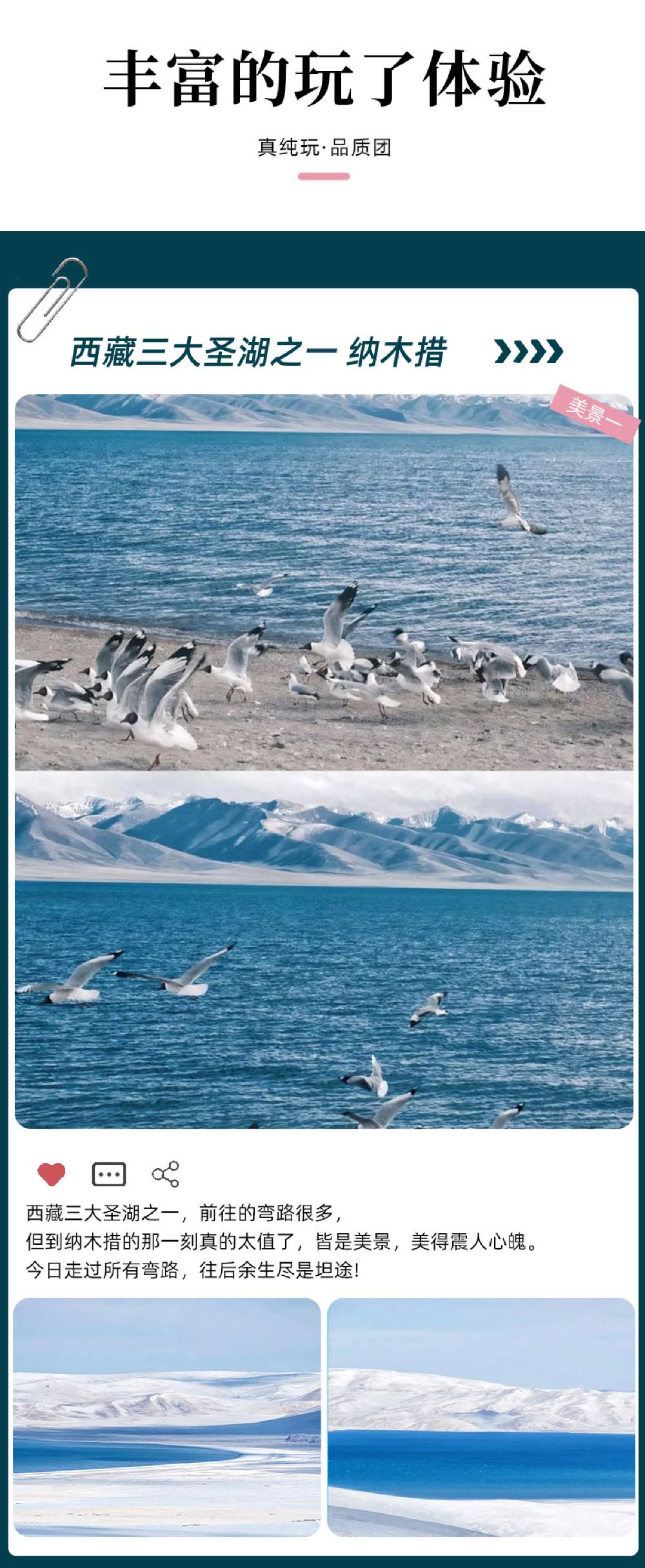 2、纳木错扎西半岛行程:由于纳木措的天气不稳定,遇到雨雪天气峰山导致无法进入景区参观,只退85元未产生的观光车费用,剩余车费部分由于我社已安排车子抵达已产生车费部分不退,下单悉知!
