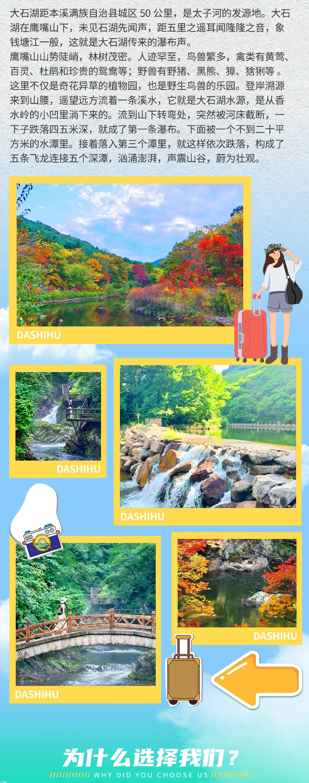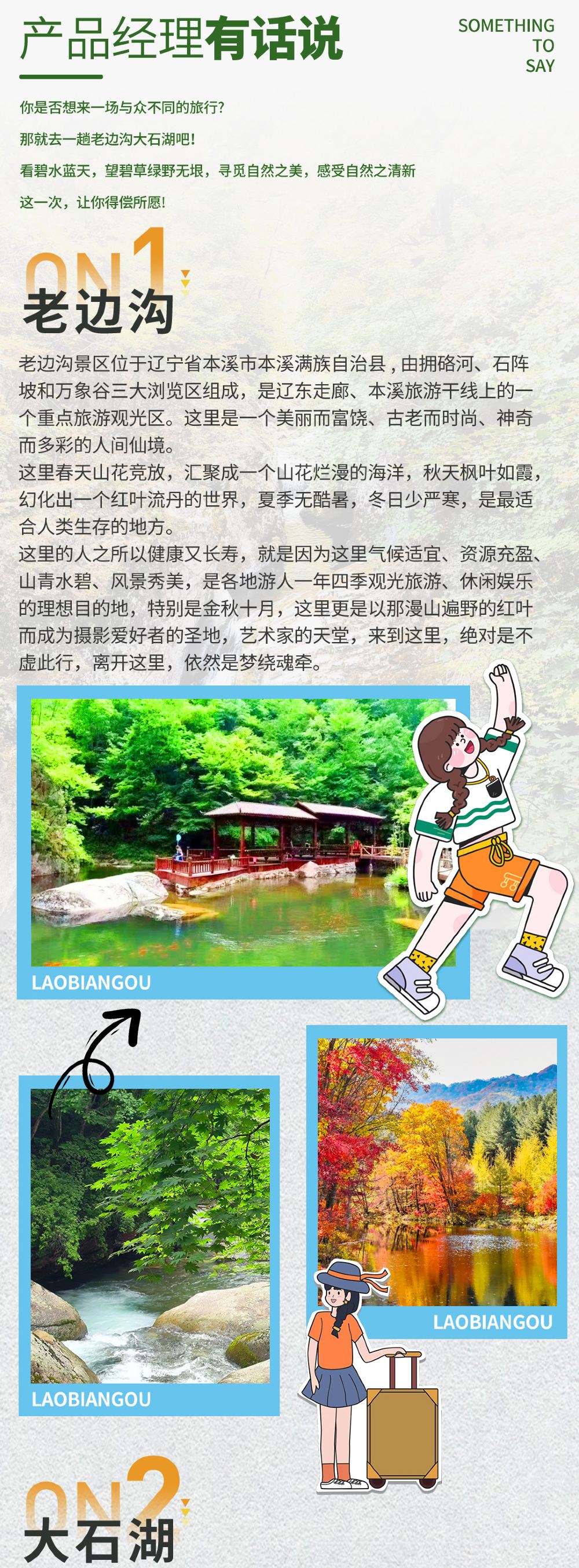 本溪老边沟风景区+大石湖风景区一日游【含车费+门票+保险】【[品质保证]旅行社承诺不进任何暗点,真正团型。】