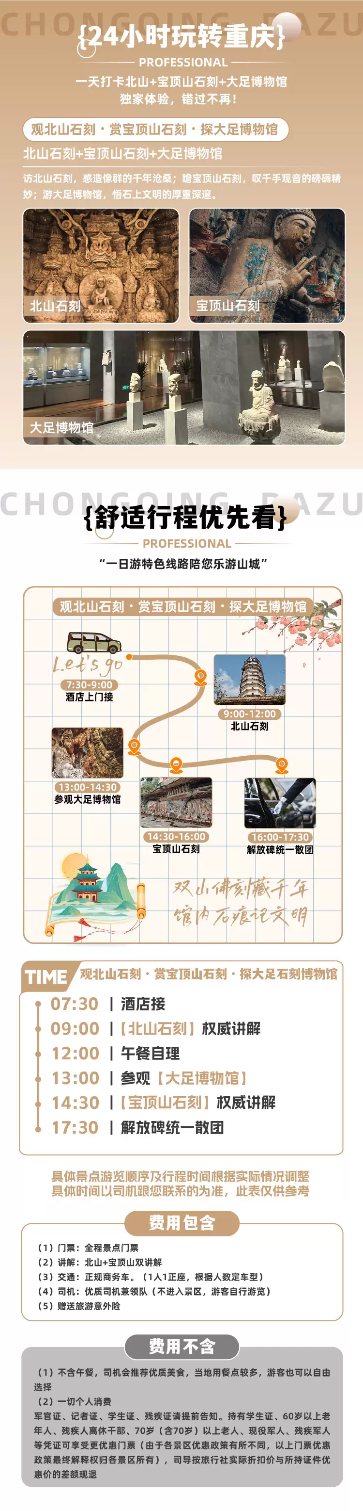 【拼小团】重庆大足石刻+北山石刻+宝顶山景区+大足石刻博物馆一日游【2-8人精品团|景区专业讲解+可选电影】